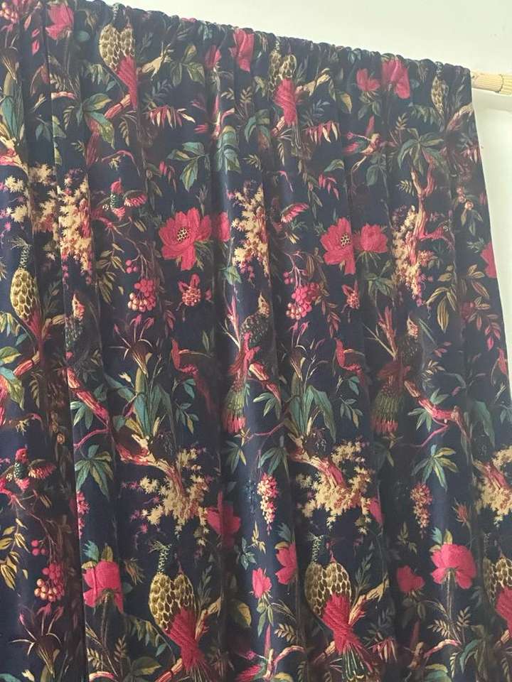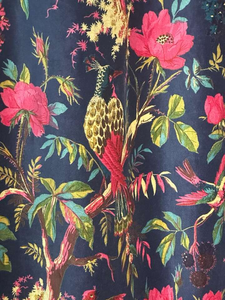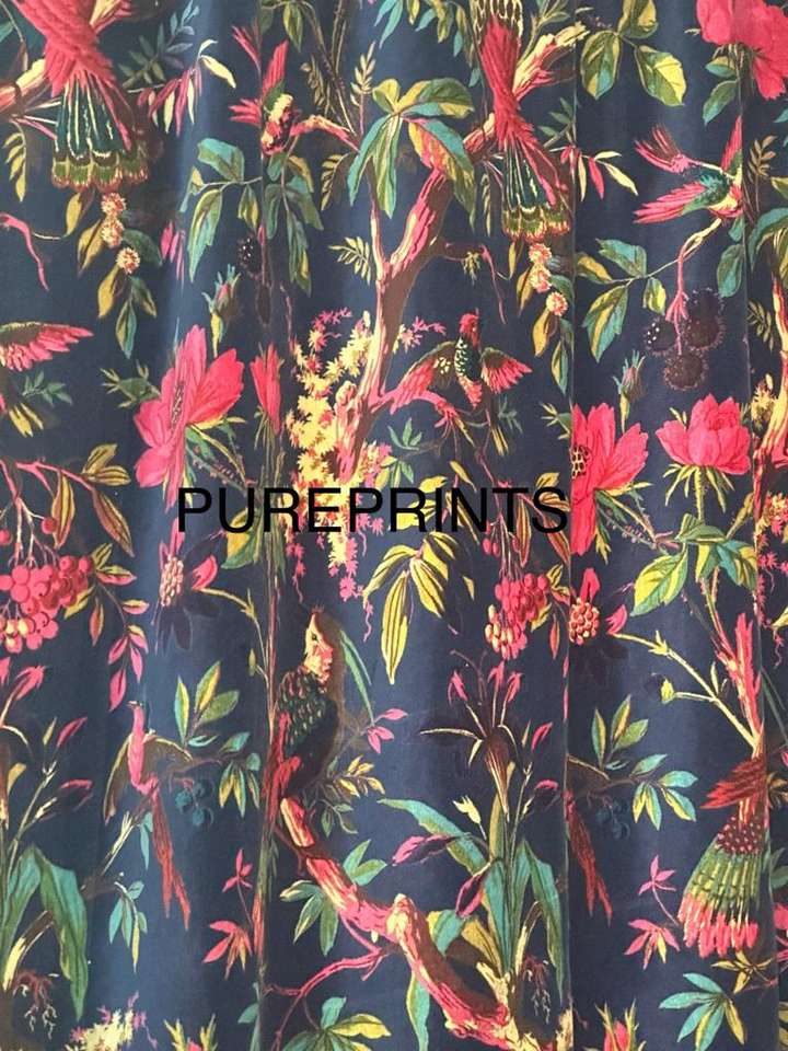 Luxury Cotton Velvet Bird Print Yards Blue Velvet Fabric Upholstery Bag lampshade Curtain Cushion Cover And Home Decor