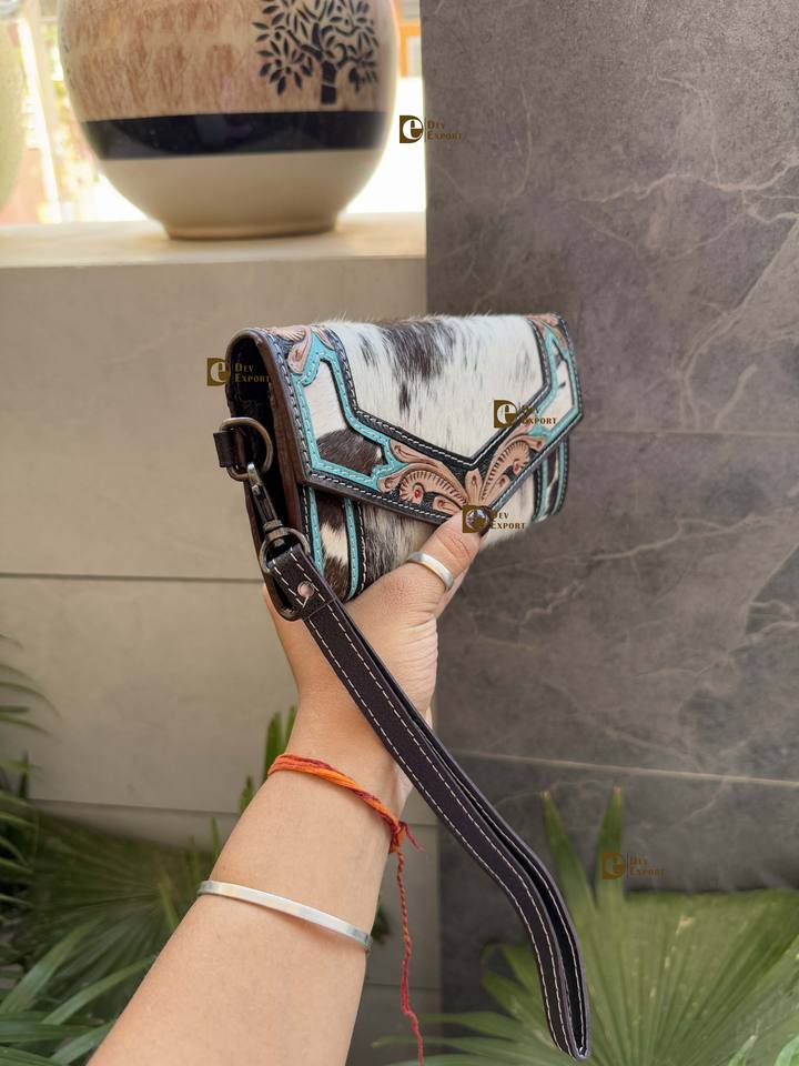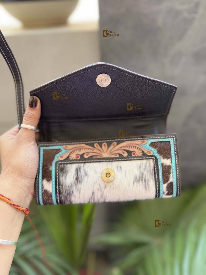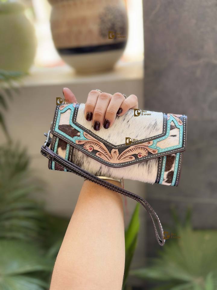 Luxury Cowhide Fur Leather Clutch Hand Tooled Carving Wristlet Wallet 2025 New Designer Wholesale Fashion Clutches Women's