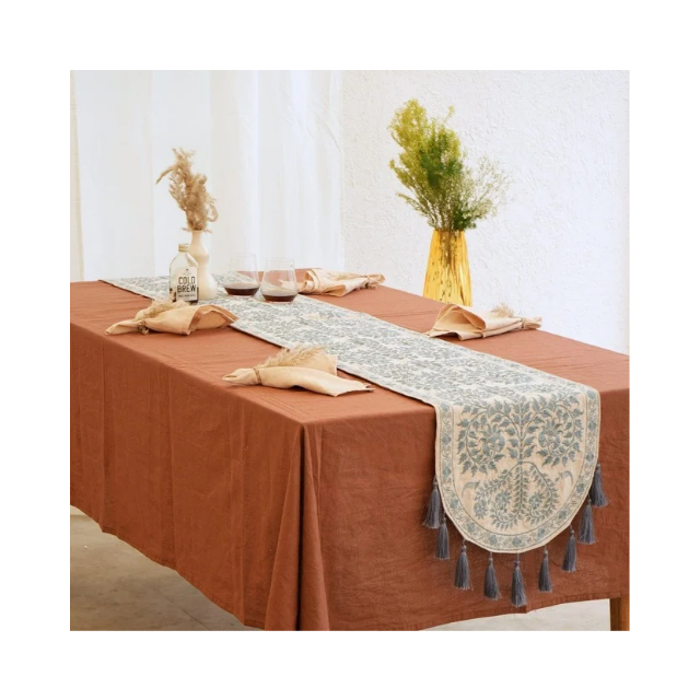 Luxury Crafted Abstract 100% Cotton 280 GSM Slub Texture Durable Wash Safe Export Quality Customizable Dining Decor Table Runner