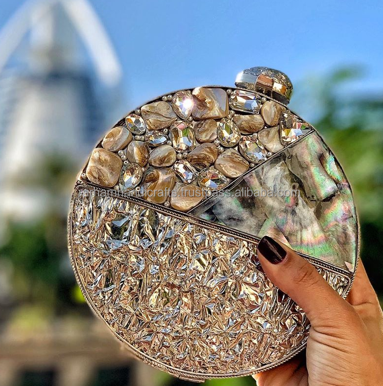 Luxury Crafts Best Evening Handbag Brass MOP Sling Clutch Bag With Elegant Brass Detailing for Women
