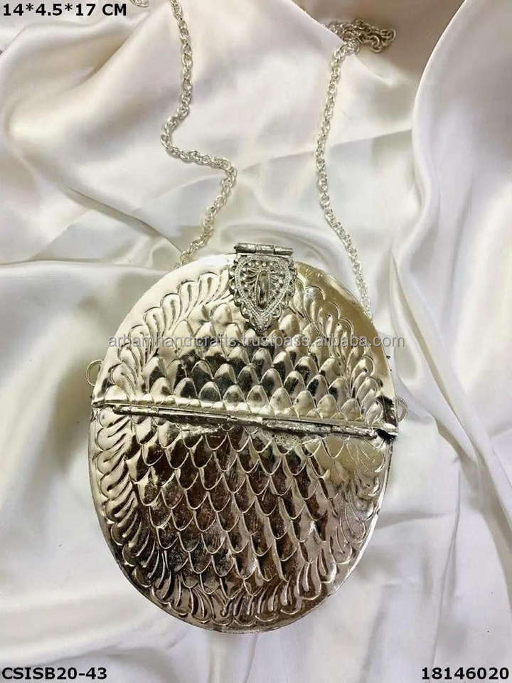 Luxury Crafts New Arrival India Vintage Metal Brass Clutch Bag Handmade Indian Artisans Women's Gold Silver Tone Messenger Bags