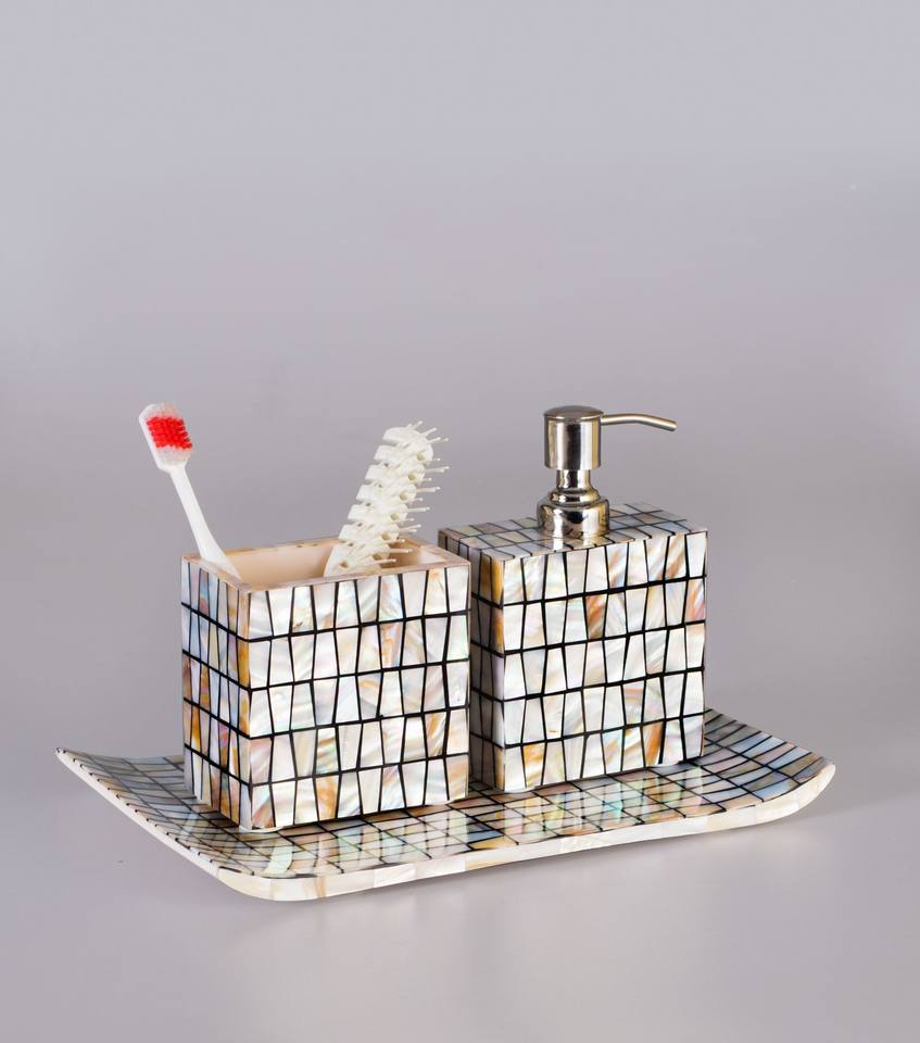 Luxury Cream Mother of Pearl Hotel Bathroom Accessories Set for Home Use