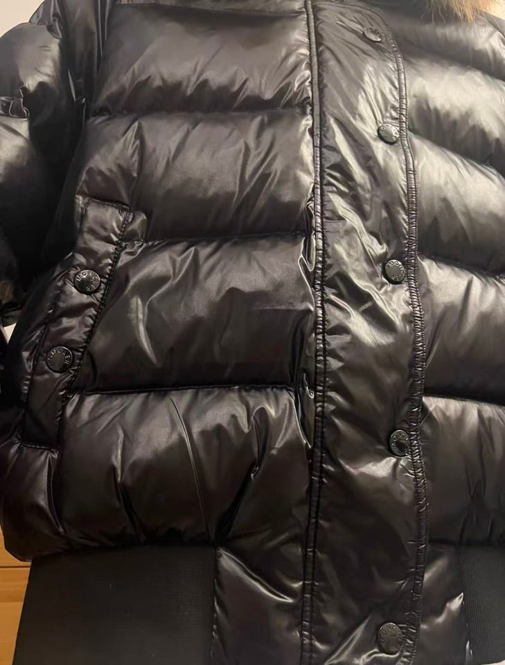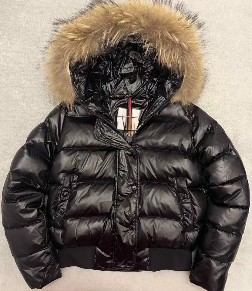 Luxury Cropped Black Glossy Puffer Jacket With Detachable Real Fur Hood Biker Bomber Style Duck Down Winter Puffer Jacket