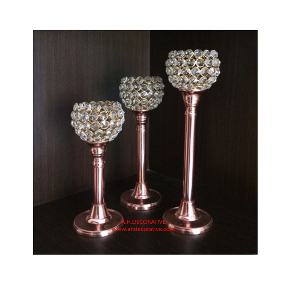 Luxury Crystal Pillar Candle Holder Aluminum Table Centerpiece Nickel Plated Handmade T Light Candle Holder for Wedding & Party