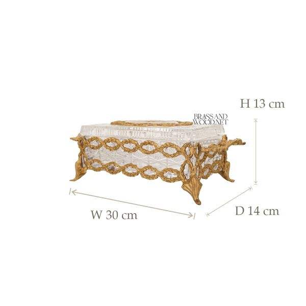 Luxury Crystal Tissue Box with Decorative Gold Plated Brass Frame Elegant Rectangular Napkin Holder for Home Decor