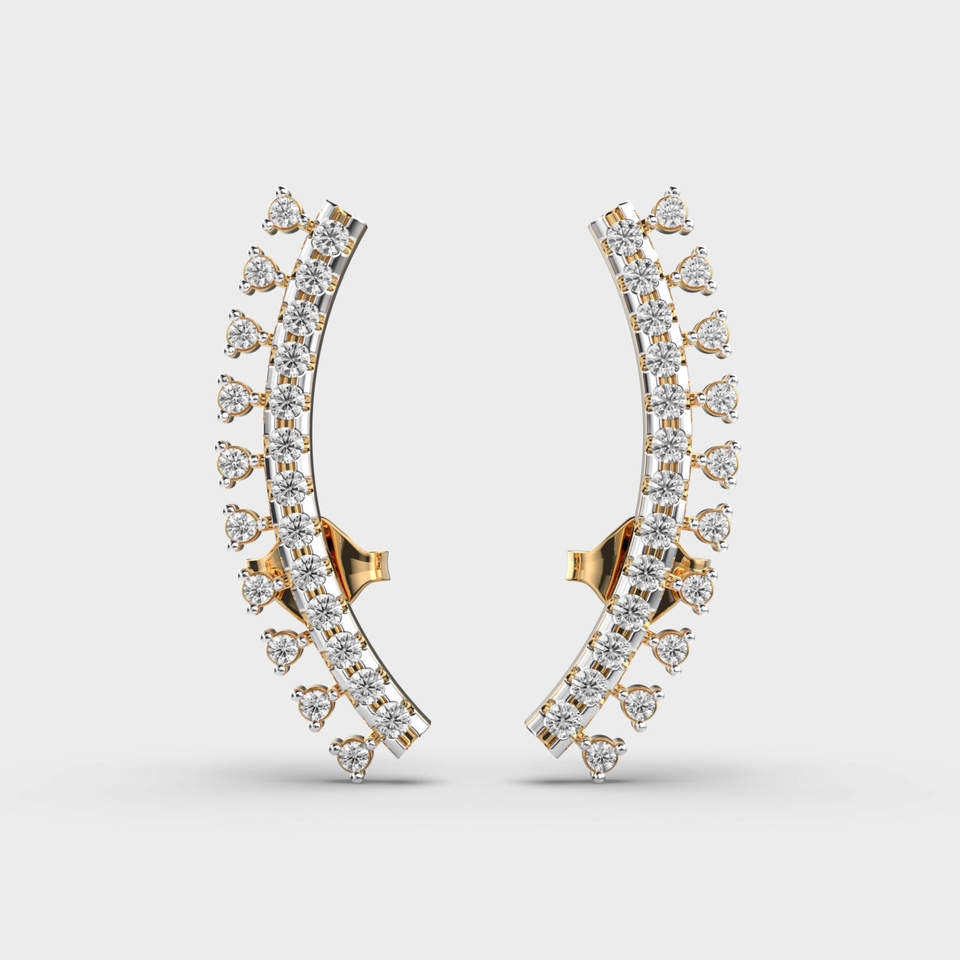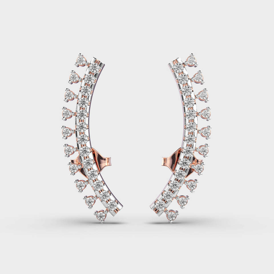Luxury Curved Diamond Clip-on Earrings in 9k Multi Color Gold | 0.45ct Round Brilliant Cut | Rhodium Plated Women's Fine Jewelry