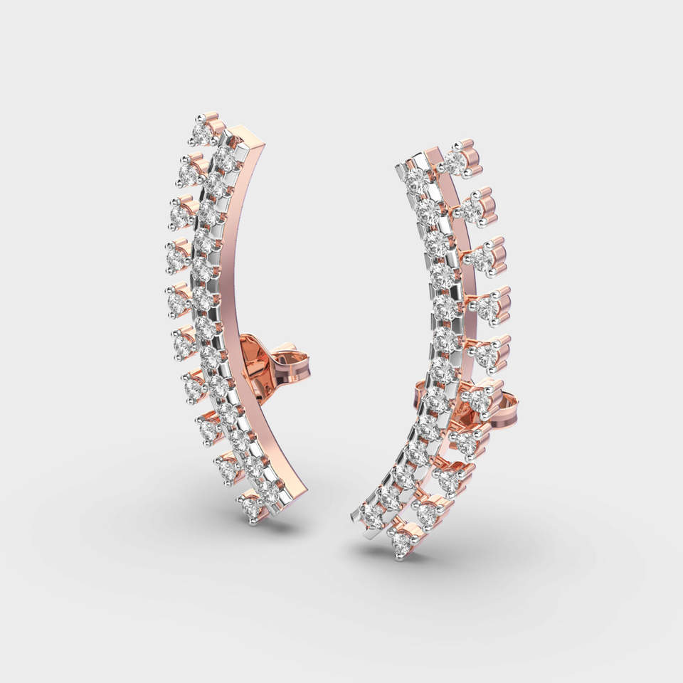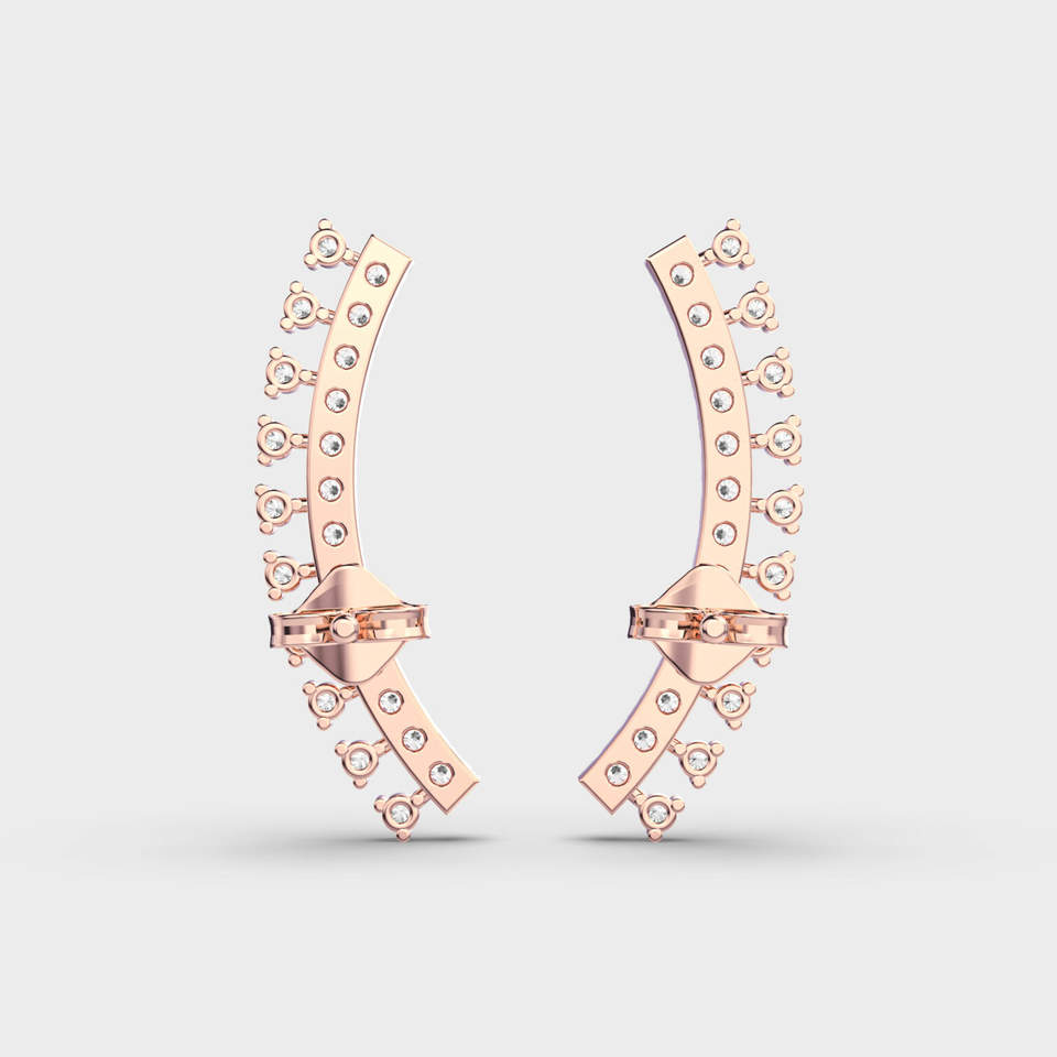 Luxury Curved Diamond Ear Crawler Earrings in 18k Multi Color Gold | Round Cut Diamond Ear Climbers | Women Fine Jewelry