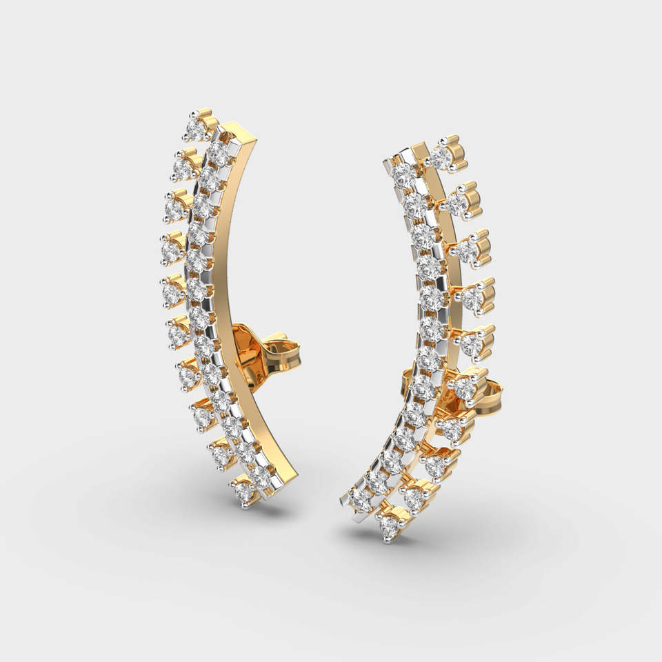 Luxury Curved Diamond Ear Crawler Earrings 14k Multi Color Gold | Cut Diamond Ear Climbers | Women's Wedding Fine Jewelry