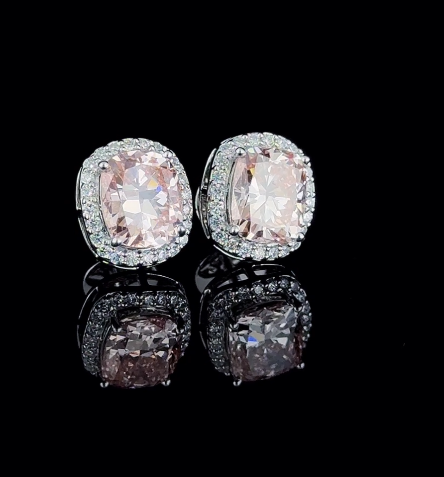 Luxury Cushion Cut Pink Diamond Halo Stud Earrings in Gold ,Elegant Blush Pink Diamond Fine Jewelry for Women