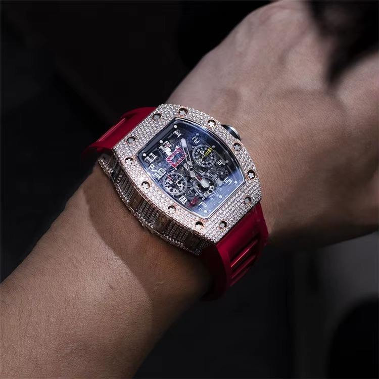 Luxury Custom Automatic Mechanical Watch Unisex Iced VVS Moissanite Diamond Hand Set Black Pearl Finishing Water Resistant Band