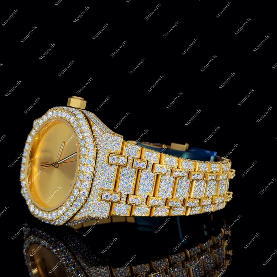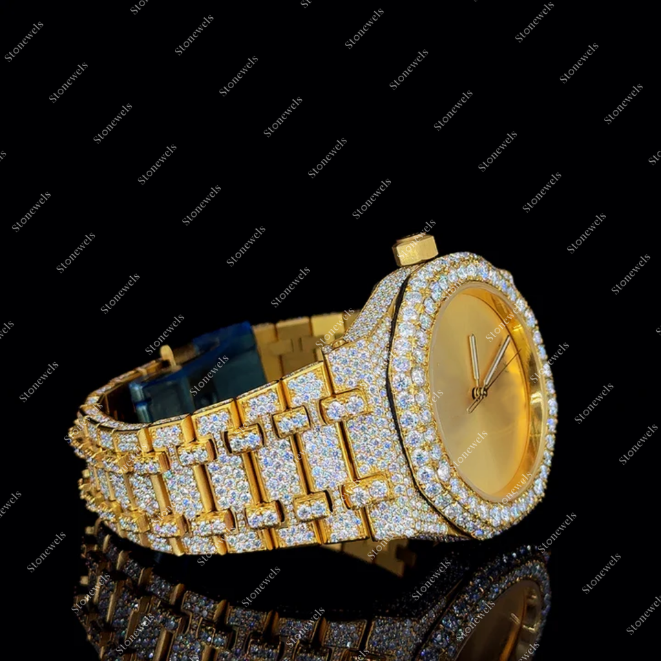 Luxury Custom Black Gemstone Diamond Top Brand Diamond Watch VVS Moissanite Diamond Automatic Mechanical Watch for Men 10kt Gold