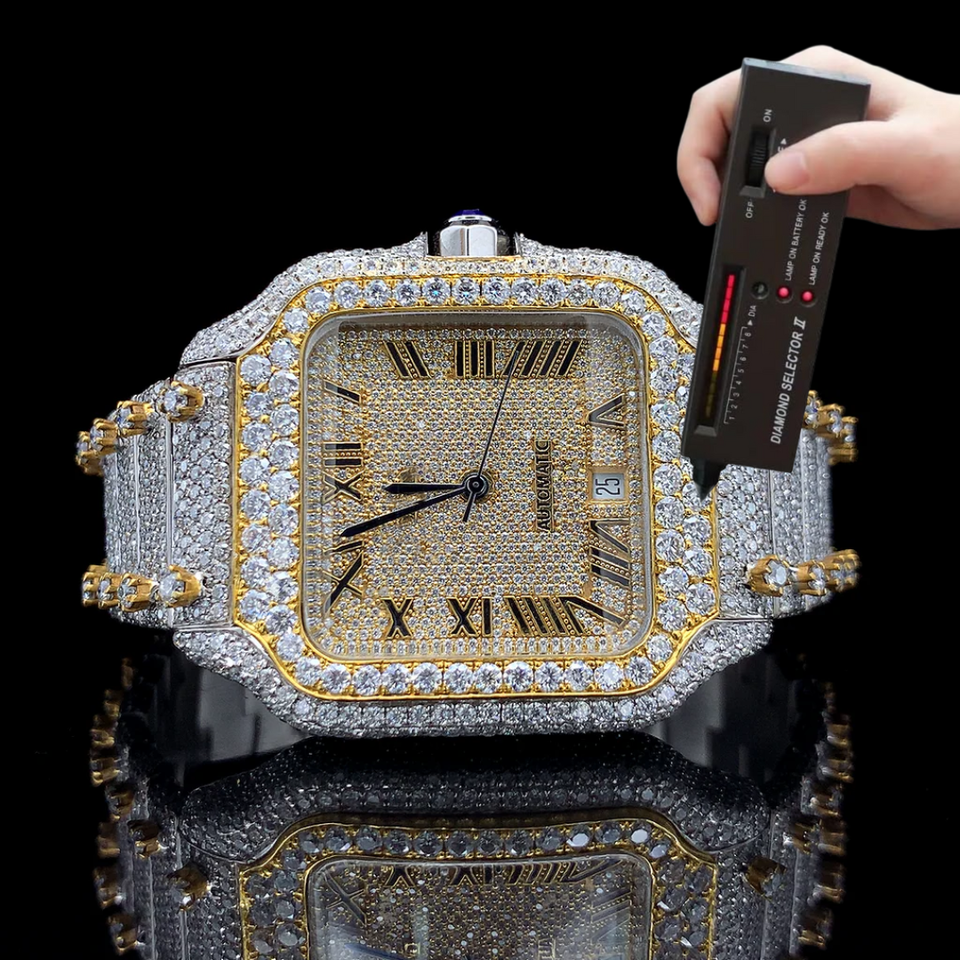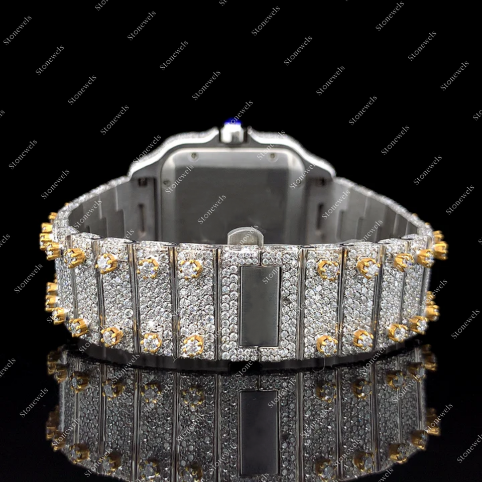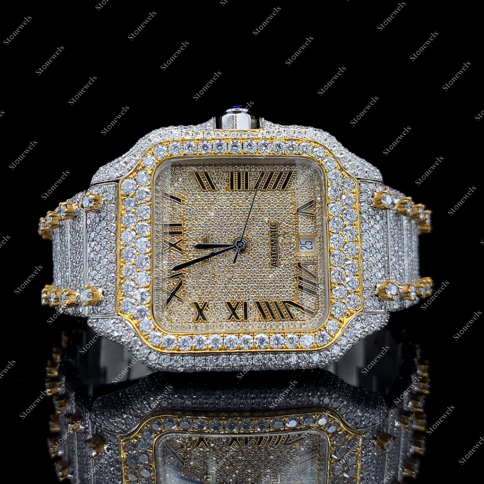 Luxury Custom Black Gemstone Diamond Top Brand Diamond Watch VVS Moissanite Diamond Automatic Mechanical Watch for Men 10kt Gold