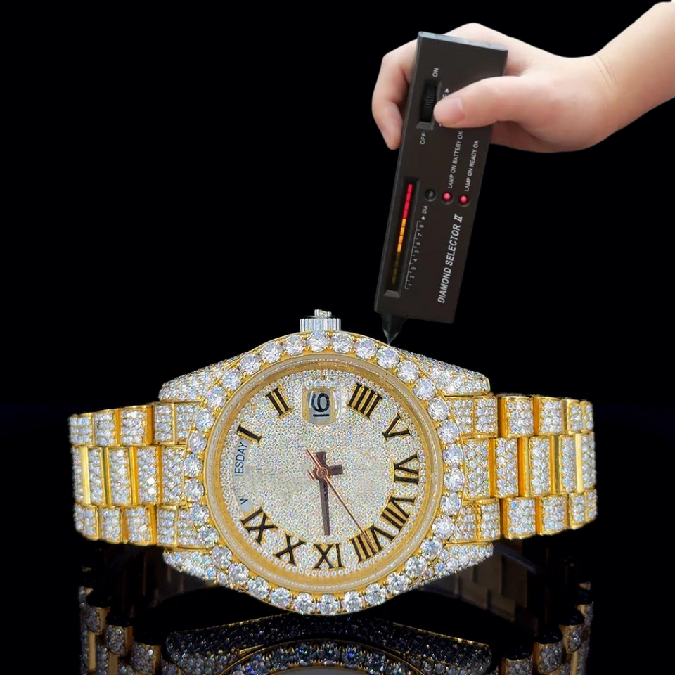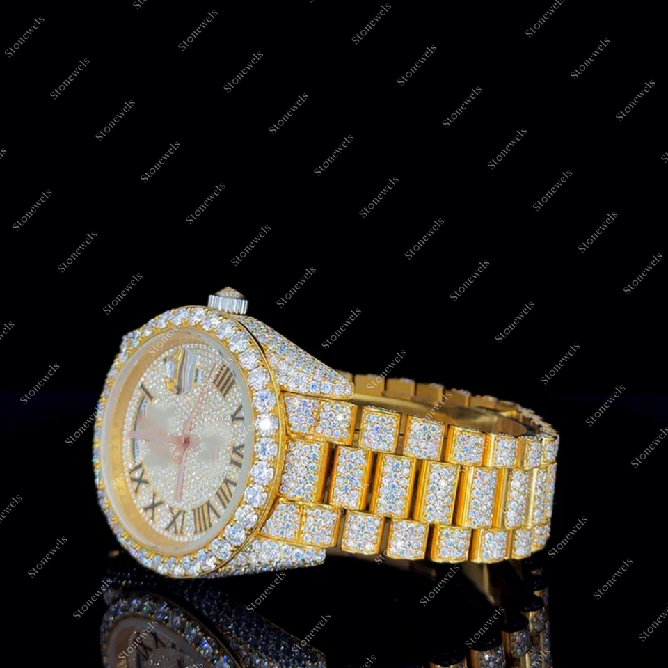 Luxury Custom Black Gemstone Diamond Top Brand Diamond Watch VVS Moissanite Diamond Automatic Mechanical Watch for Men 10kt Gold