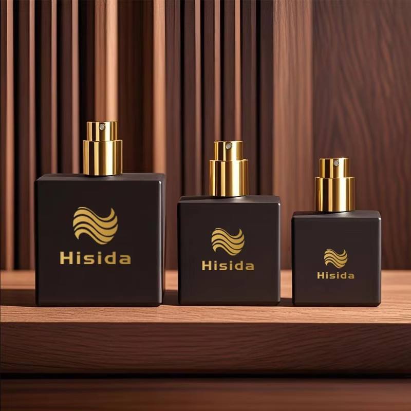 Luxury Custom Design Crimp Square Frosted Empty Black Perfume Bottle 30ml 50ml 100ml Gold Cap Glass Perfume Bottle With Box