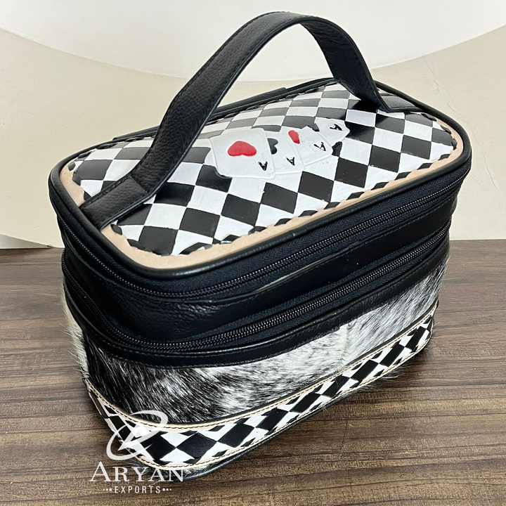 Product Name:Checkered Genuine Cowhide Leather Toiletry Bag