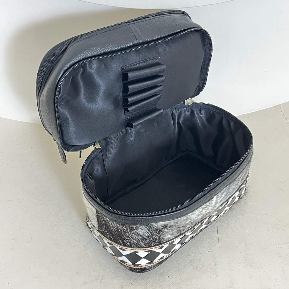 Product Name:Checkered Genuine Cowhide Leather Toiletry Bag