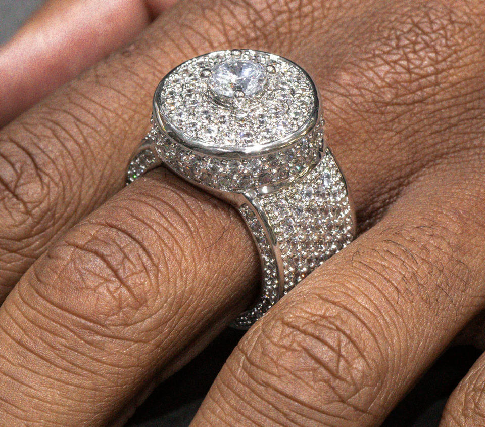 Luxury Custom Hip Hop Jewelry Mens Iced Big Diamond Ring in 925 Solid Silver with Real VVS1 Moissanite Diamonds 18K Gold Plated