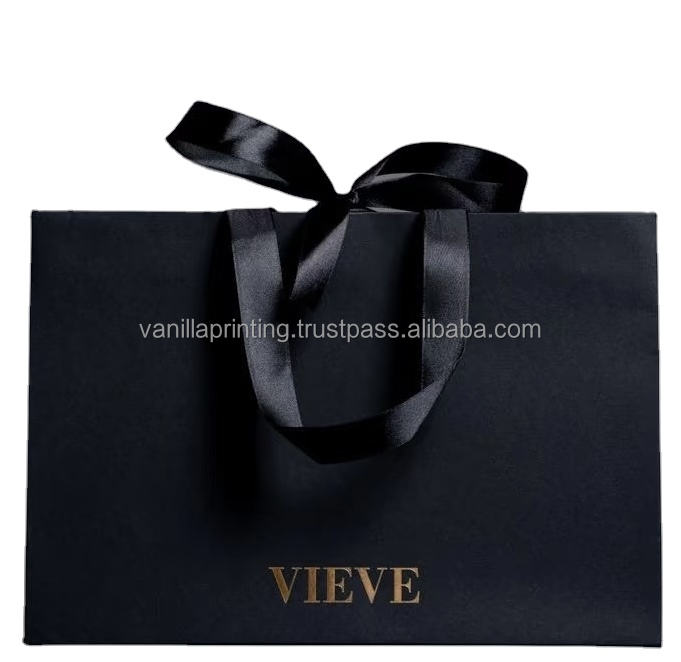 Luxury Custom Kraft Paper Bag with Embossed Foil Logo Handle for Cosmetics Packaging for Promotions