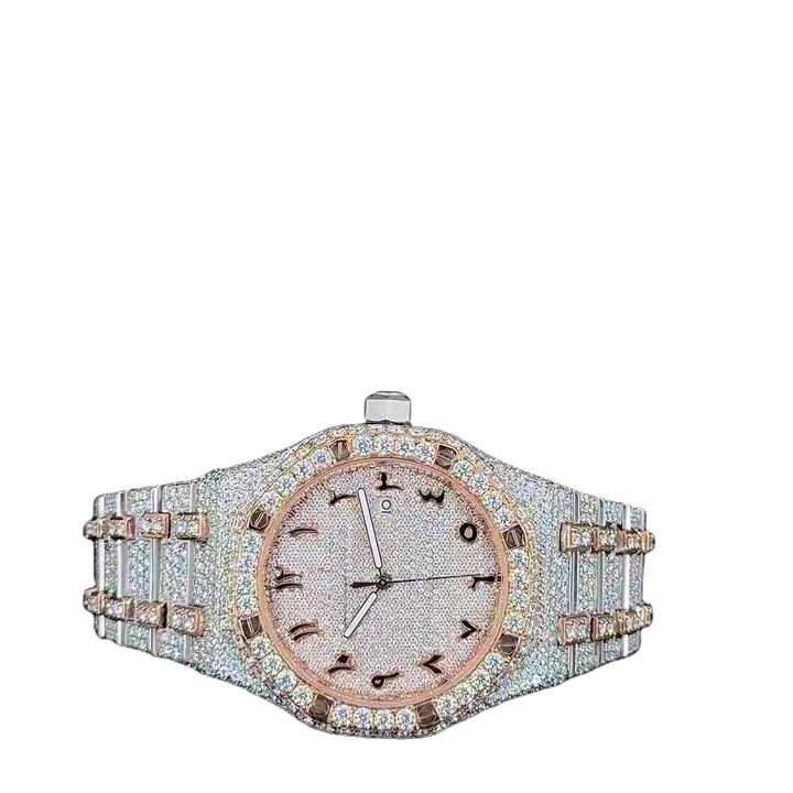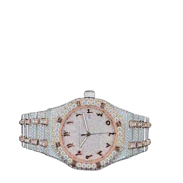 Luxury Custom Lab Grown Diamond Watch for Men Women Hip Hop AP Arabic Two Tone Automatic Moissanite Watch with Glass Dial Window