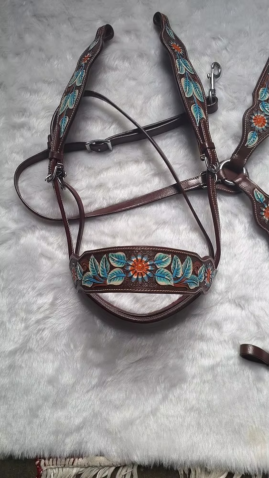 Luxury Custom Premium Western Horse Headstall Breast Collar High Quality Equestrian Riding Leather Rhinestones Handmade Printed