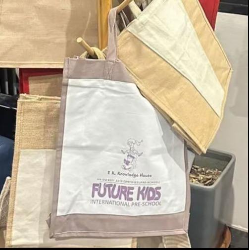 Luxury Custom Printed Jute Tote Grocery Shopping Bag with Ribbon Handle Wholesale Jute Bag with Goods Customization