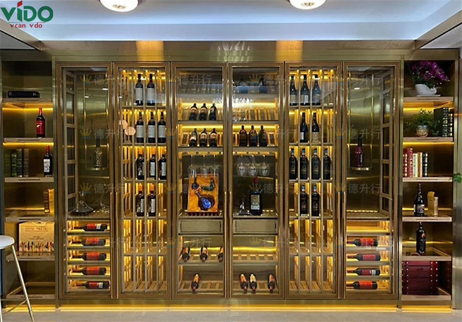 Luxury Custom Stainless Steel Glass Wine Display Cabinet Constant Temperature Cooler for Whiskey Wine for Home Bar Living Room