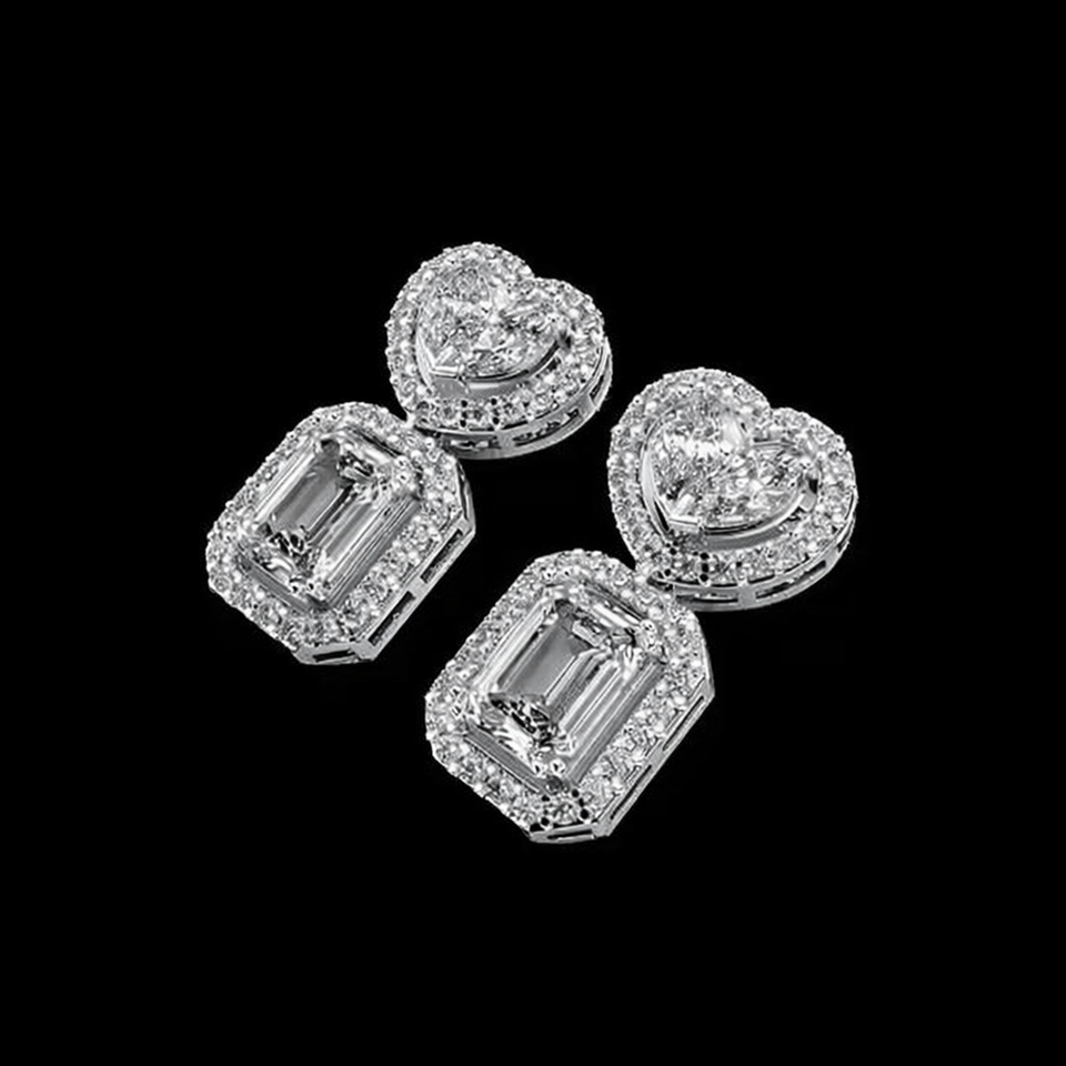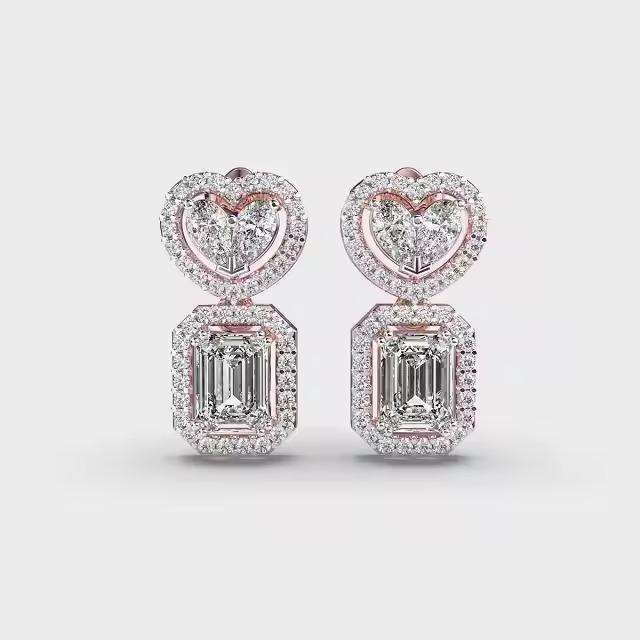 Luxury Customized Rose Gold 925 Silver Emerald Cut Heart Moissanite Minimalist Women's Charm Earrings Engagement Wedding
