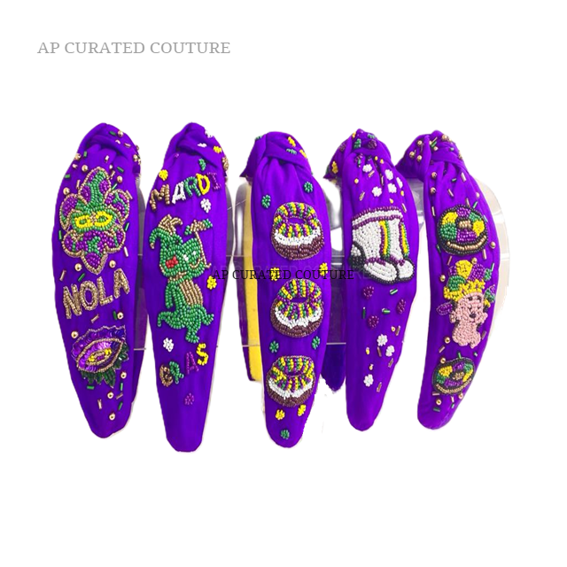 Luxury Daily Wear Mardi Gras Theme Beaded Headband Handmade Pearl Hair Accessory with New Design