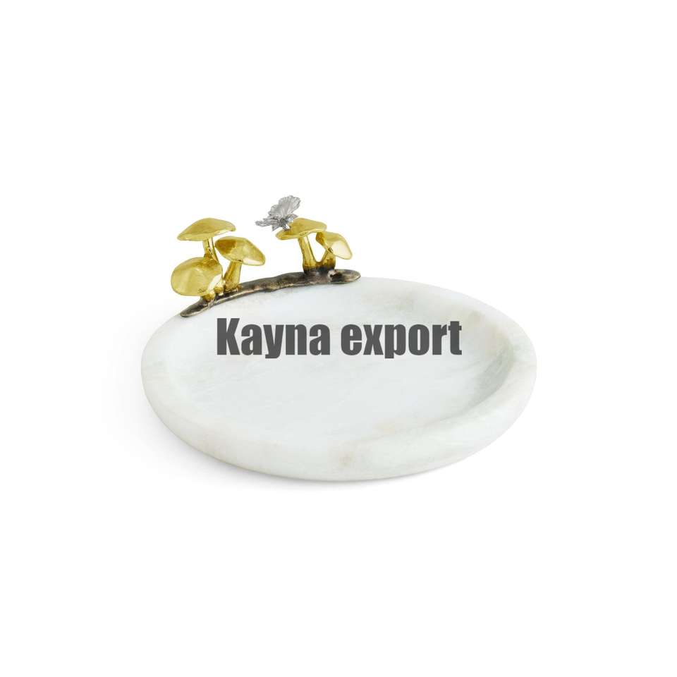Luxury Decorative Cheese Platter Bowl with Marble Base and Gold Metal Mushroom Style Handicraft Table Decoration for Parties