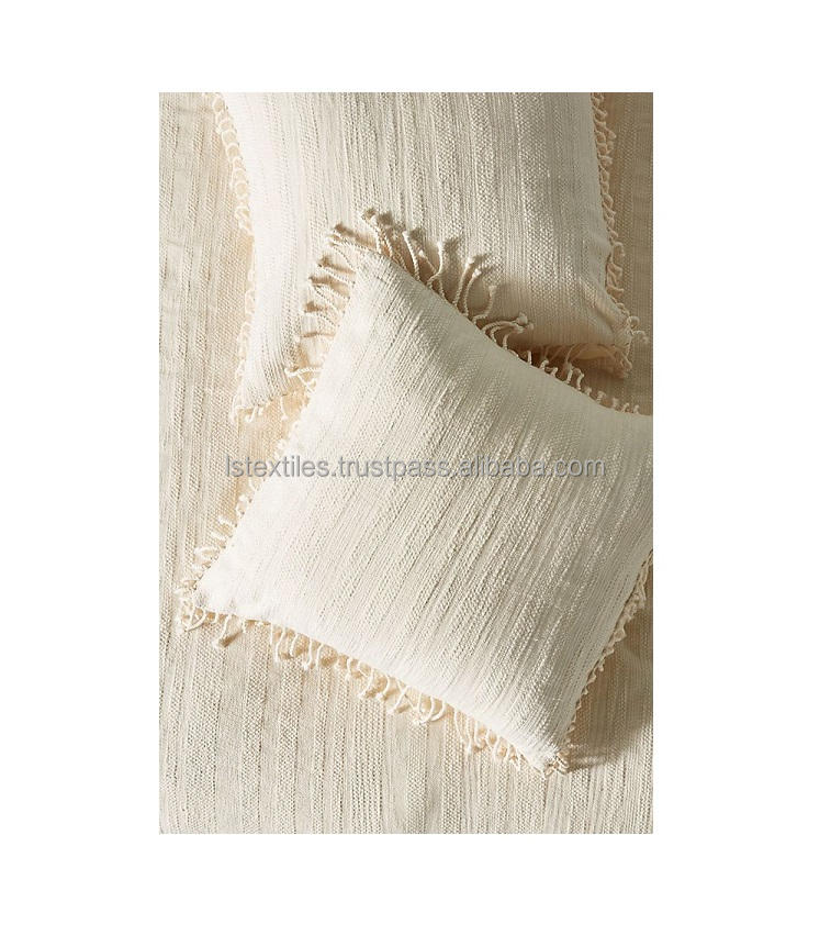 Luxury Decorative Cotton Back Pillow Cover with Fringes Soft Solid Throw for Sofa Bed & Outdoor Use Modern Waterproof Design
