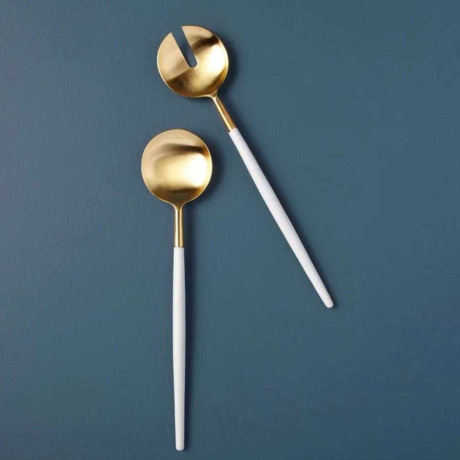 Luxury Decorative Stainless Steel Salad Server Set for Home Use, Elegant Gold Metal Serving Spoon Fork for Hotel & Dining Tables