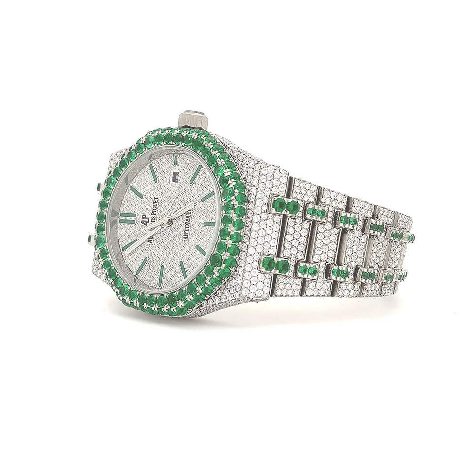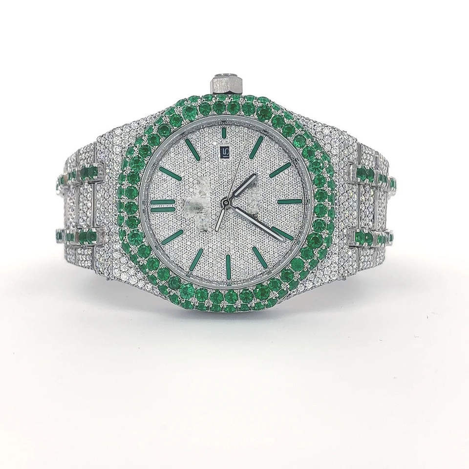 Luxury Design Automatic Movement Moissanite Diamond Hip Hop Watch Stainless Steel 41mm Gold Plated Iced Auto Date Feature