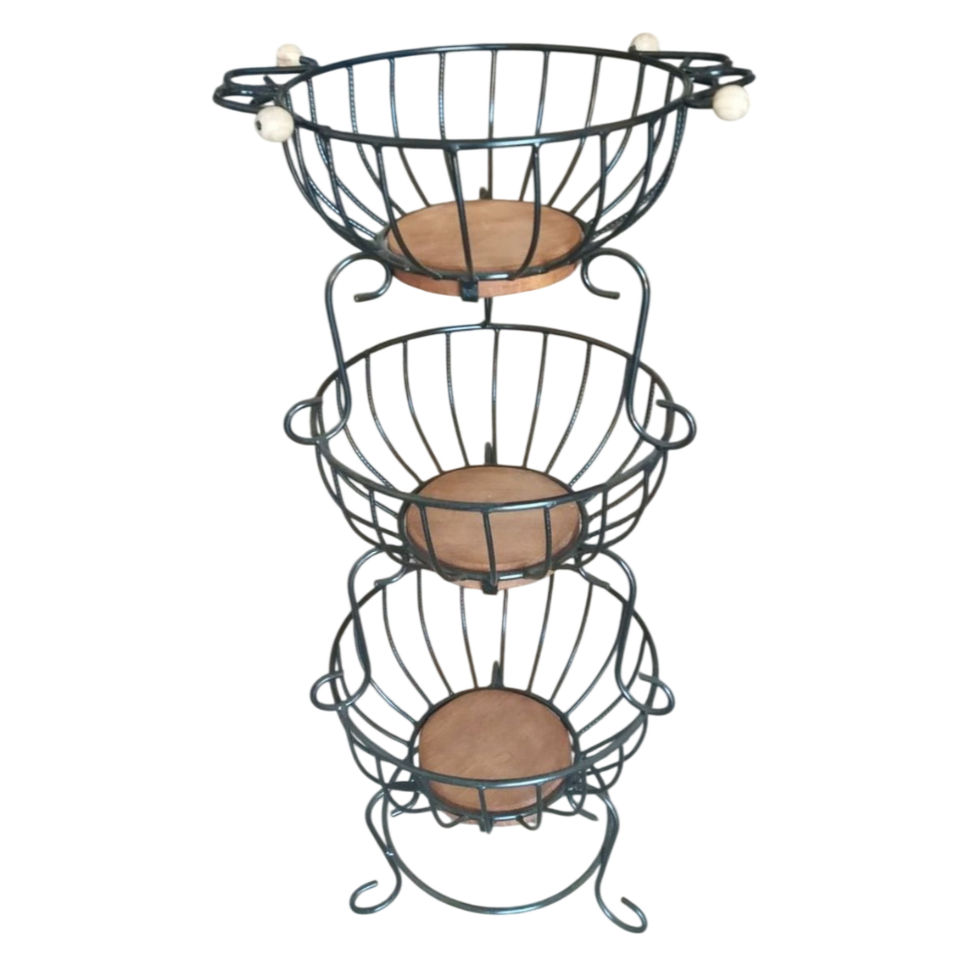 Luxury Design Black Power Coated Iron Wire Fruits Basket With 3 Tier Rectangle Shape for Home Decor Storage Basket