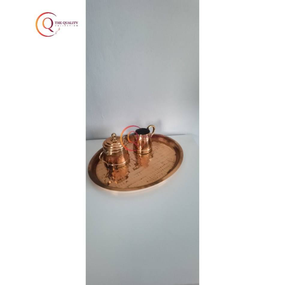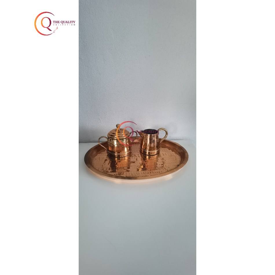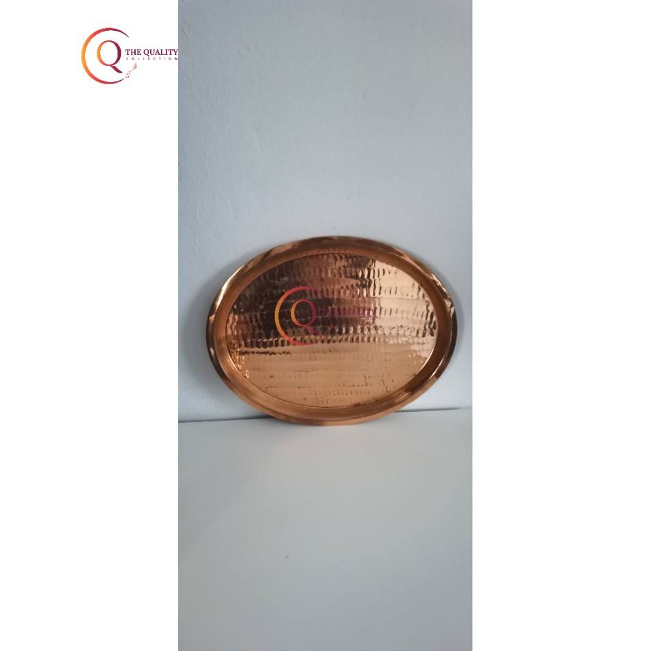 Luxury Design Copper Hammered Round Shape Handmade Serving Tray Shining Polished Home Hotels And Resort Decoration Tray In India