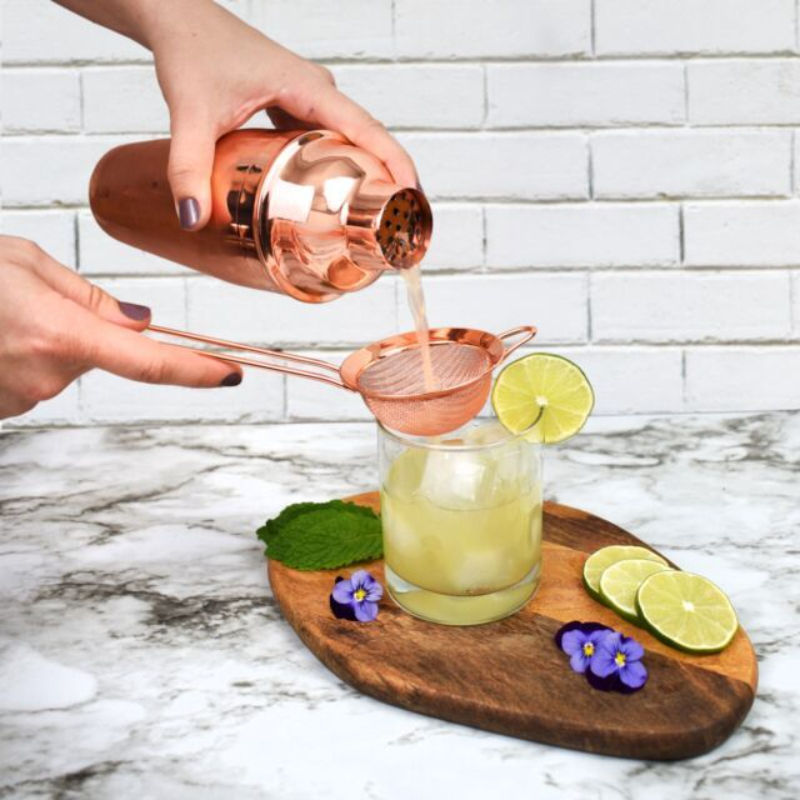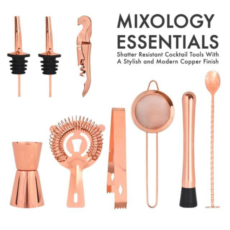 Luxury Copper Polished Barware Tools Set Wooden Stand Cocktail Shaker Metal Bar Set Ideal Home Restaurant Stylish Entertaining