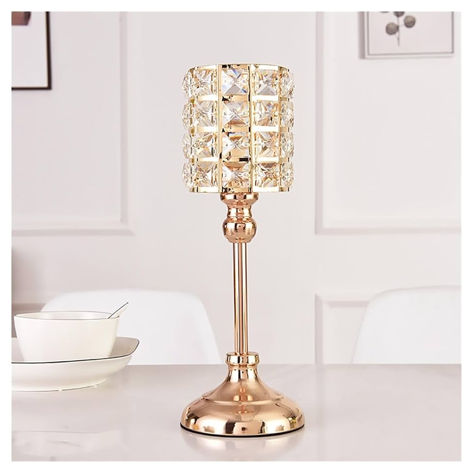 Luxury Design Crystal Beaded Gold Metal Candle Holder Stand Use For Home Hotel Wedding Decoration