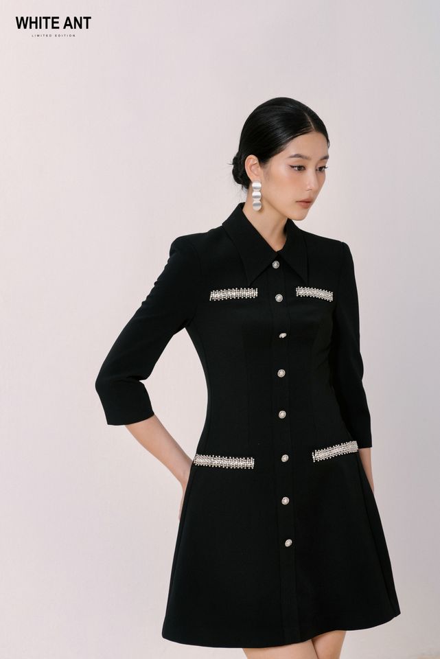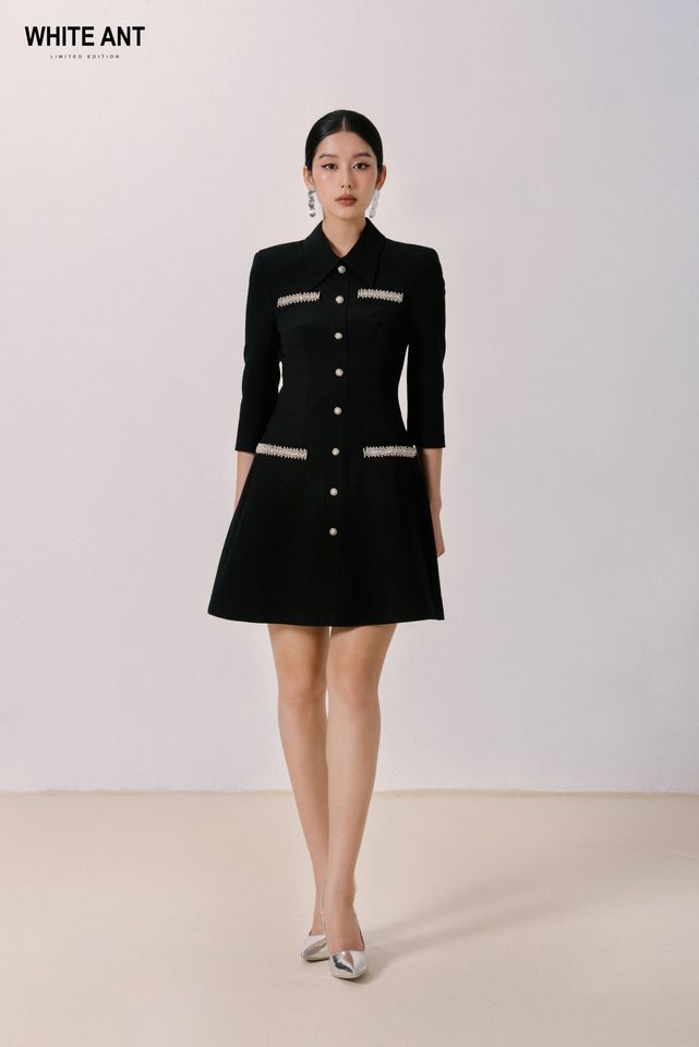 Luxury Design Dress for Womens Short Dress Vevel Aline Dress Good-Quality Fabric Women'S Clothes Whiteant Vietnam Factory