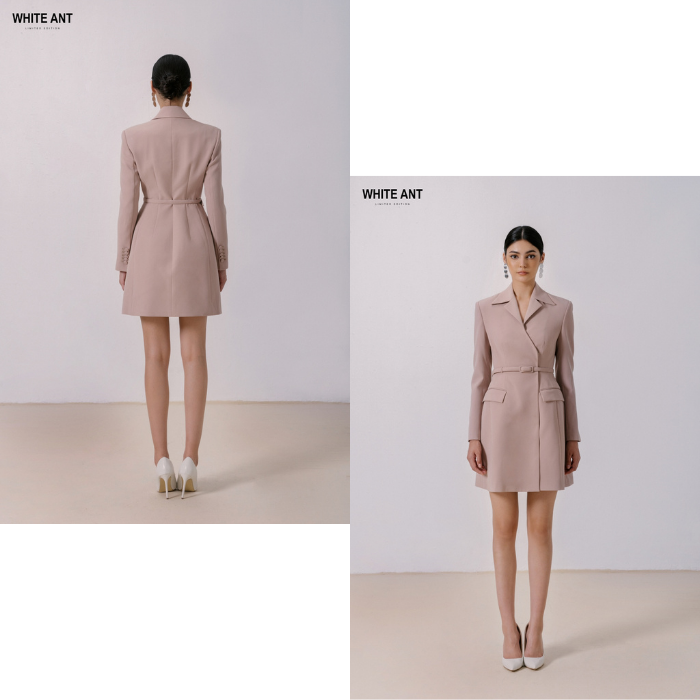 Luxury Design Dress for Womens Single-Breasted Leonard A-Line Dress Good-Quality Fabric High-Fashion Whiteant Vietnamese Brand