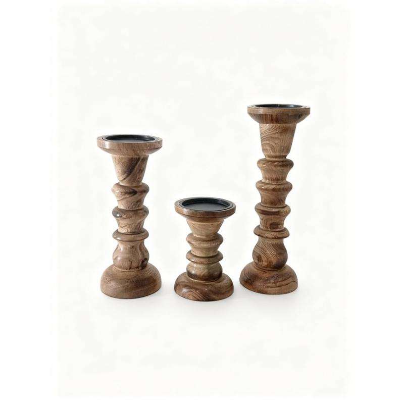 Luxury Design Eco-Friendly Wooden Candle Holder Set with Smooth Polish for Aromatherapy and Relaxation Use from Indian Supplier