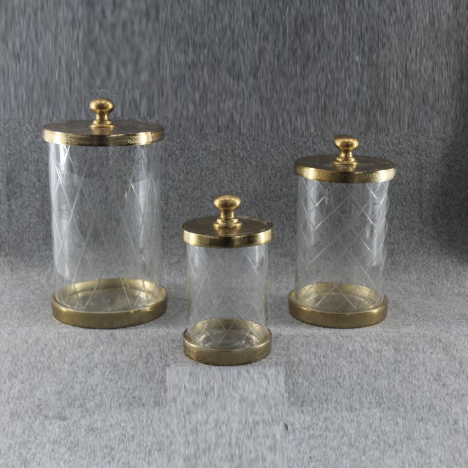 Luxury Design Modern Glass Canister Set with Metal Lid for Kitchen Storage Sugar Tea Coffee Display Box Freshness Preservation