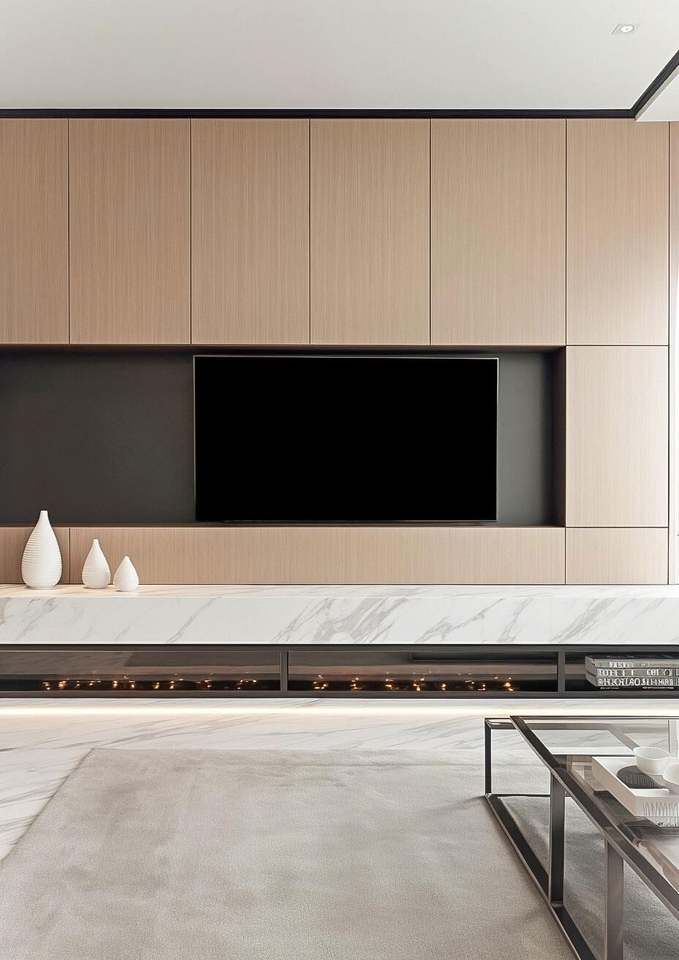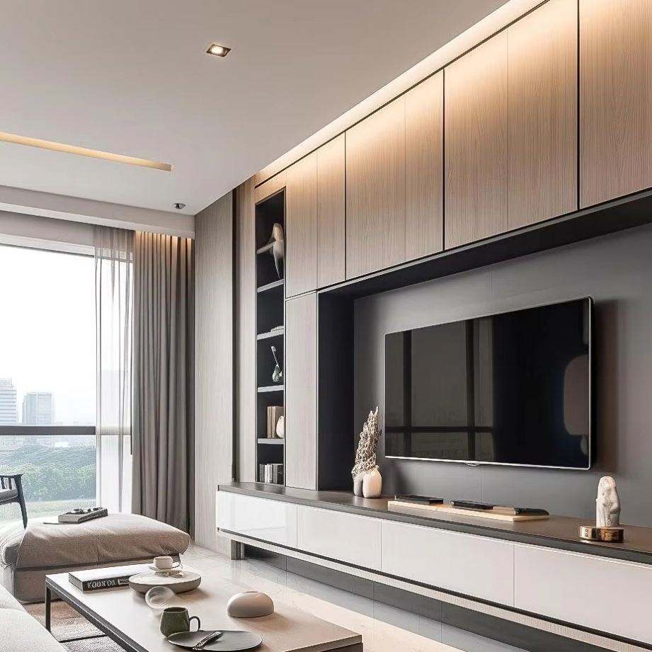 Luxury Design Living Room Furniture Modern Wood Grain Wall Mounted Tv Cabinet
