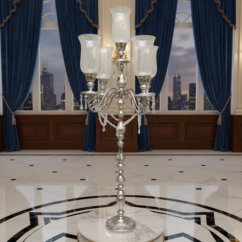 Luxury Design Metal Nickel Plated Candelabra Hot Selling Party Floor or Table Centerpiece Decor Eco-friendly tealight Holders