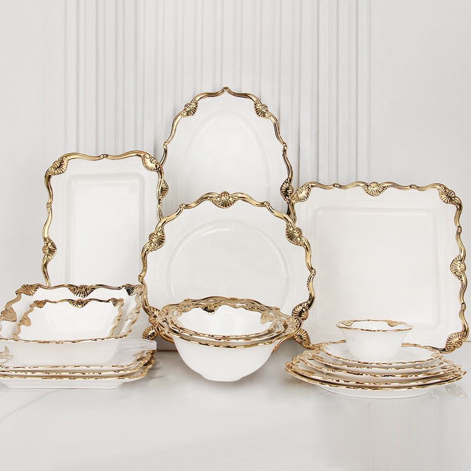 Luxury Design Middle Eastern Style Gold Border Porcelain Charger Plate and Bowl