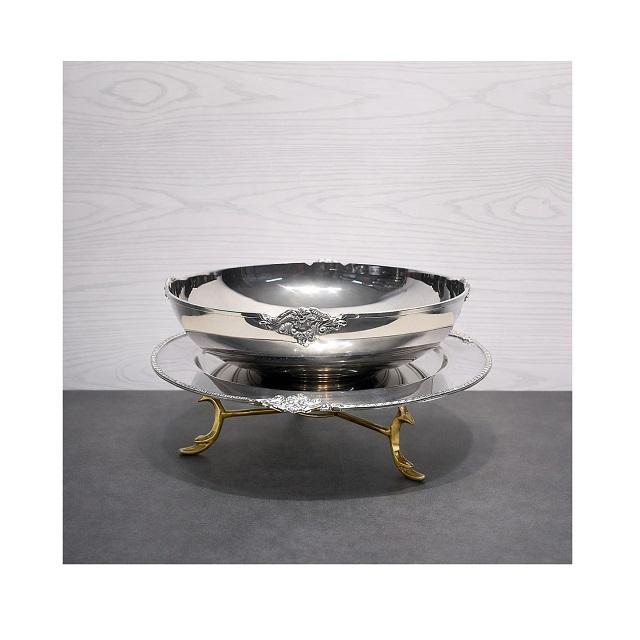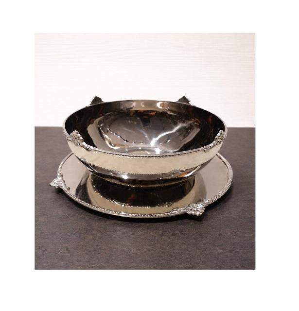 Luxury Design Polished Stainless Steel Classic Chocolate Bowl with Plate Deluxe Quality Restaurant Hotel Tableware Serving Bowl