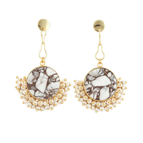 Luxury Design Round Howlite Turquoise Wire Wrap Tiny Pearl Earrings 24k Gold Plated Hanging Stud Dangle Earrings Fine Jewelry