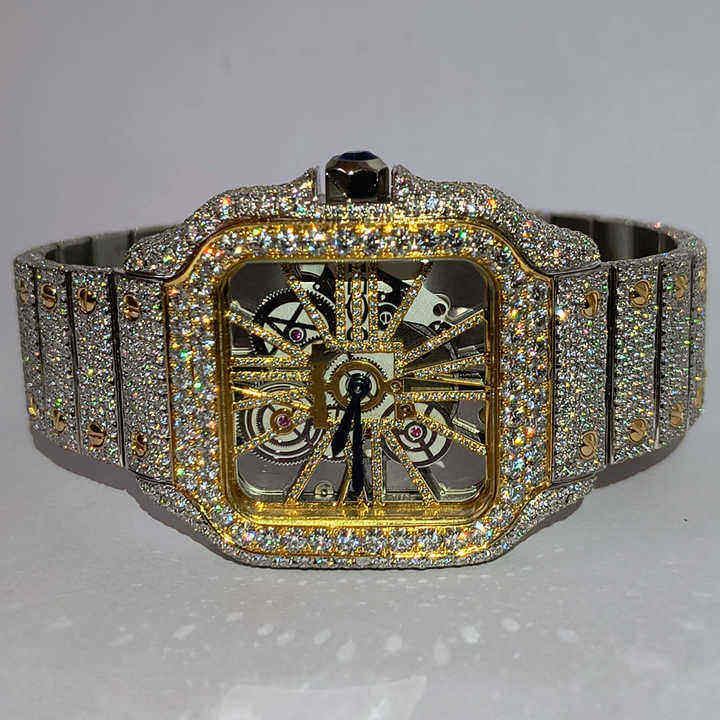 Luxury Design Stainless Steel Watch Iced Moissanite Diamond Bezel Glass Hip Hop Jewelry Men Trending Fashion Use Export Sale