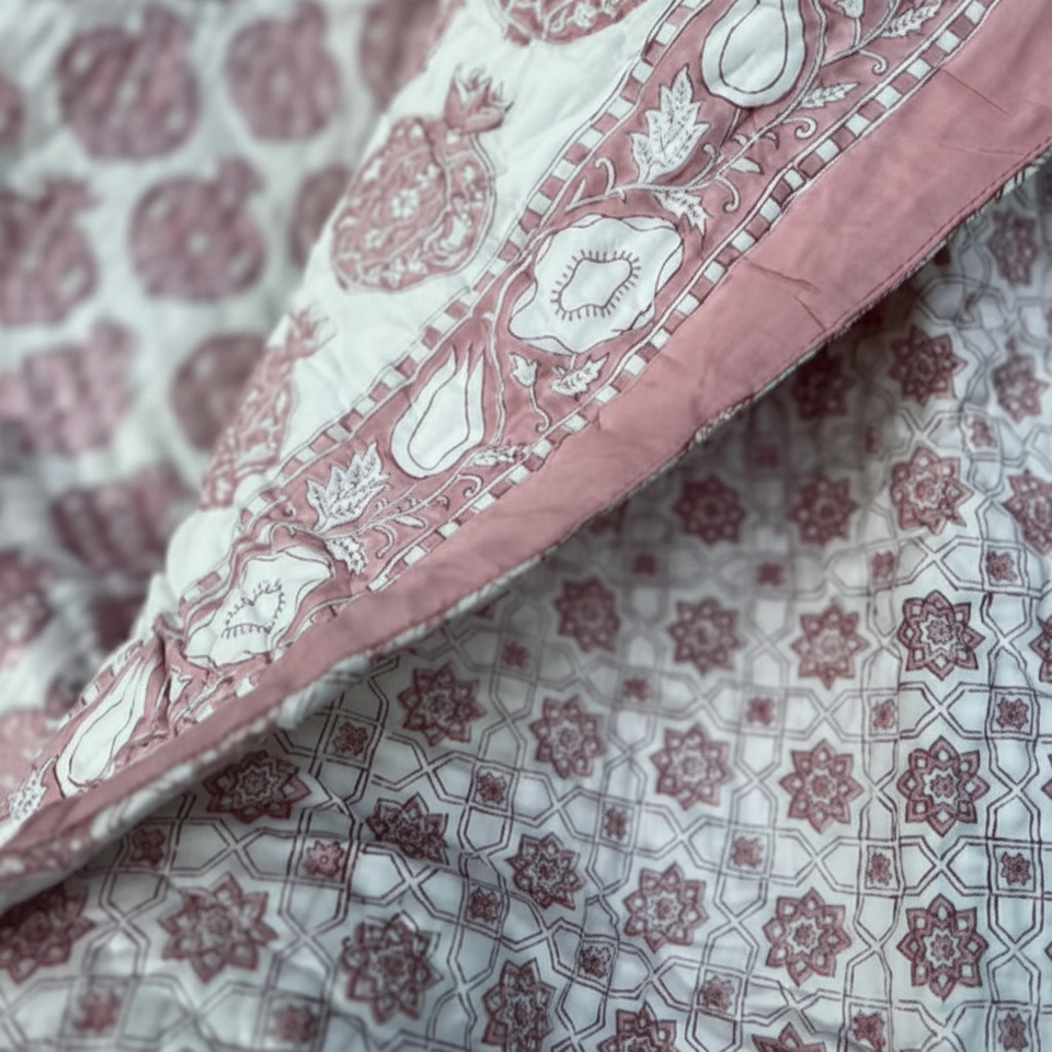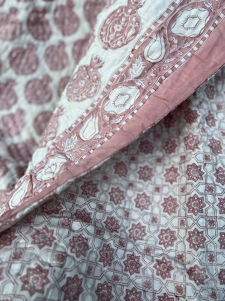 Luxury Design Traditional 200 GSM Cotton Filling Pomegranate Reversible Hand Block Jaipuri Quilt Printed 60x90" & 90x108" Size