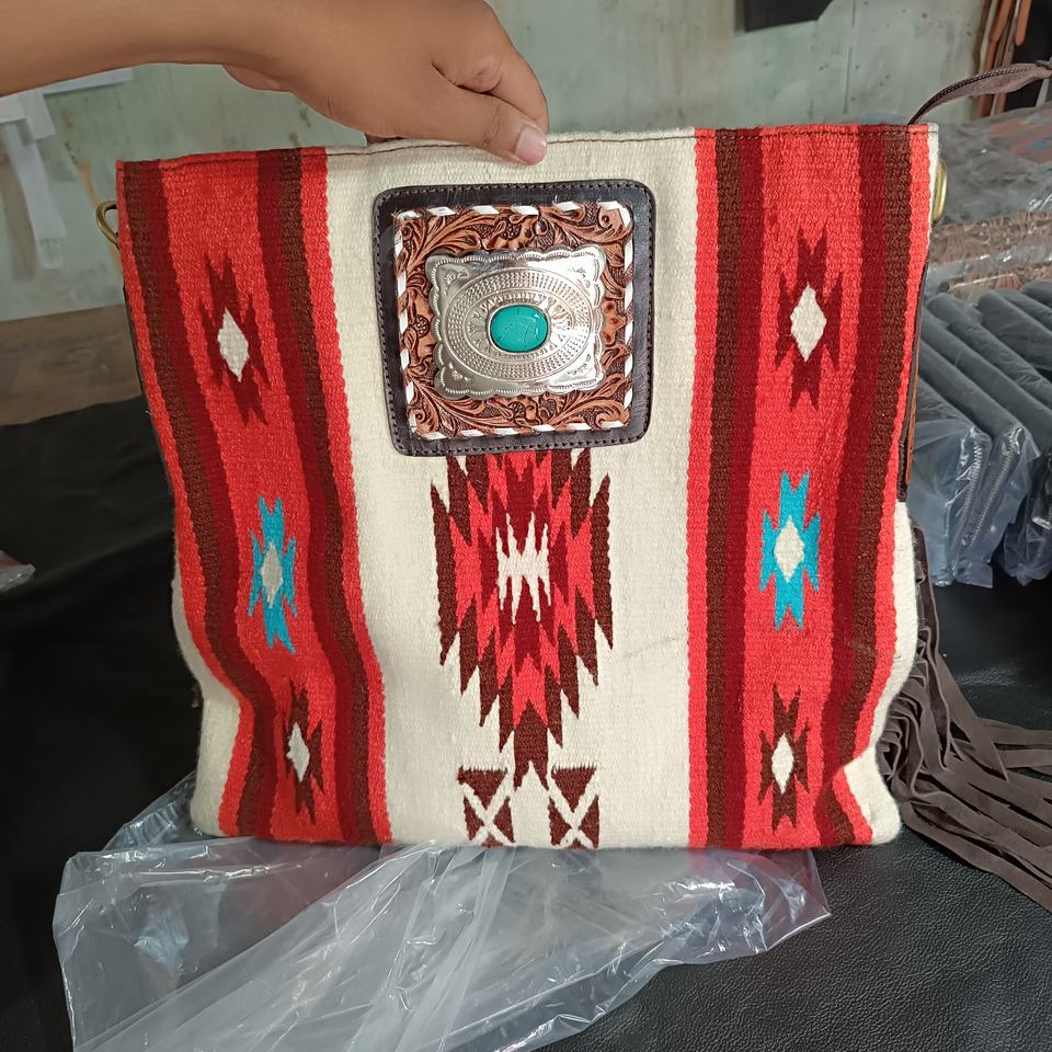 Luxury Design Western Style Fringe Saddle Blanket Concho Crossbody Bag Cowhide Leather Tote Bag Manufacturer Ready to Ship
