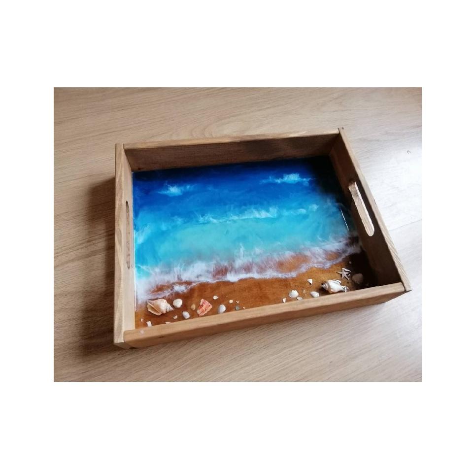 Luxury Design Wood and resin Tray Custom Resin Epoxy & Wooden Serving Tray Decorative Serving Tray with Handles