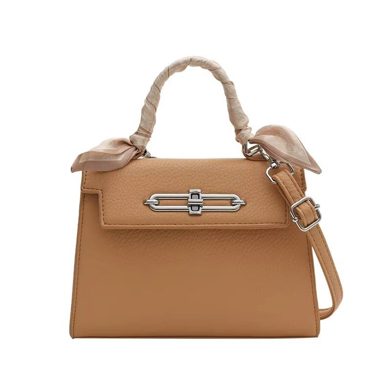 Luxury Designer 2025 Women's Handbags with Scarf Top Handle Bag for Women Solid Color Shoulder Bags for Ladies